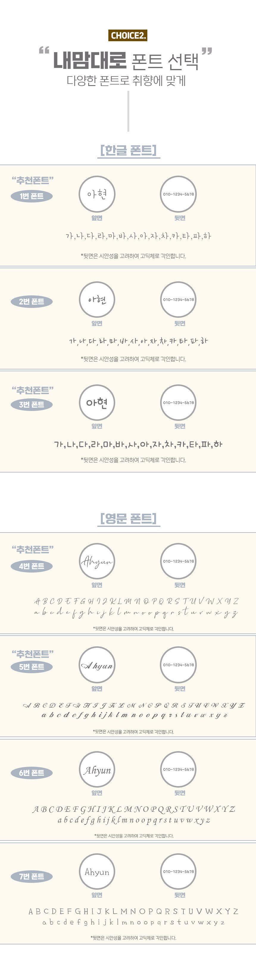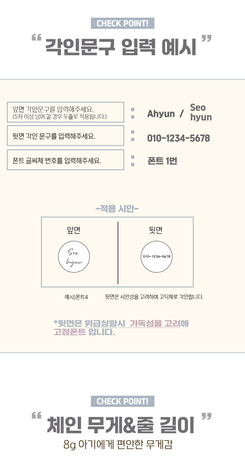 영문 대문자, 소문자 꼭 구분해주세요선택하세요.배송메세지에 ex) 앞면: Seohyun 뒷면:010-1234-5678 입력