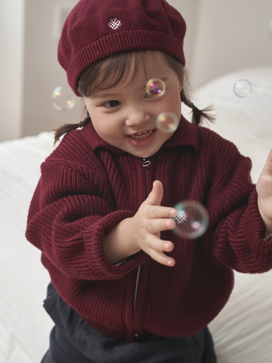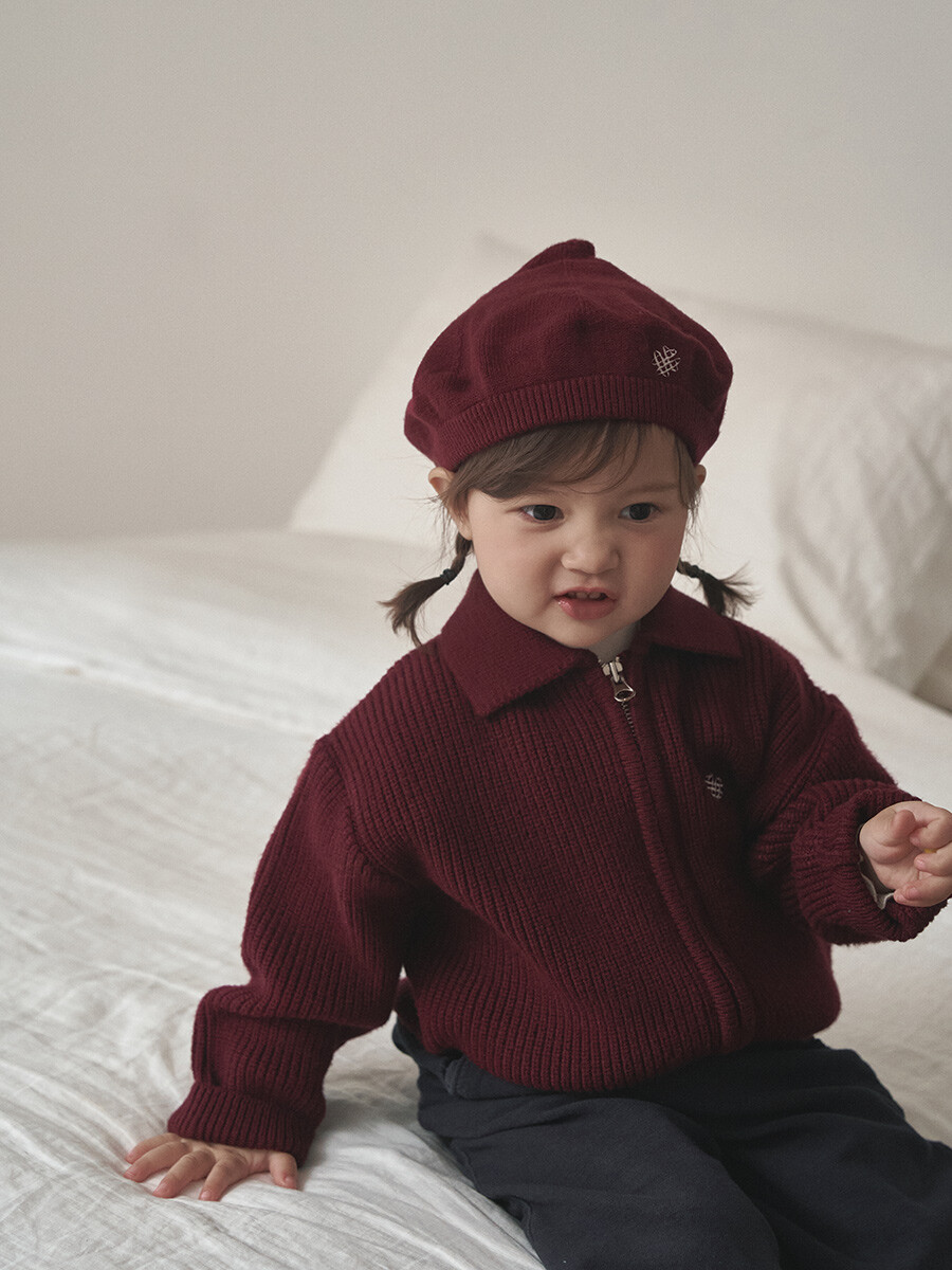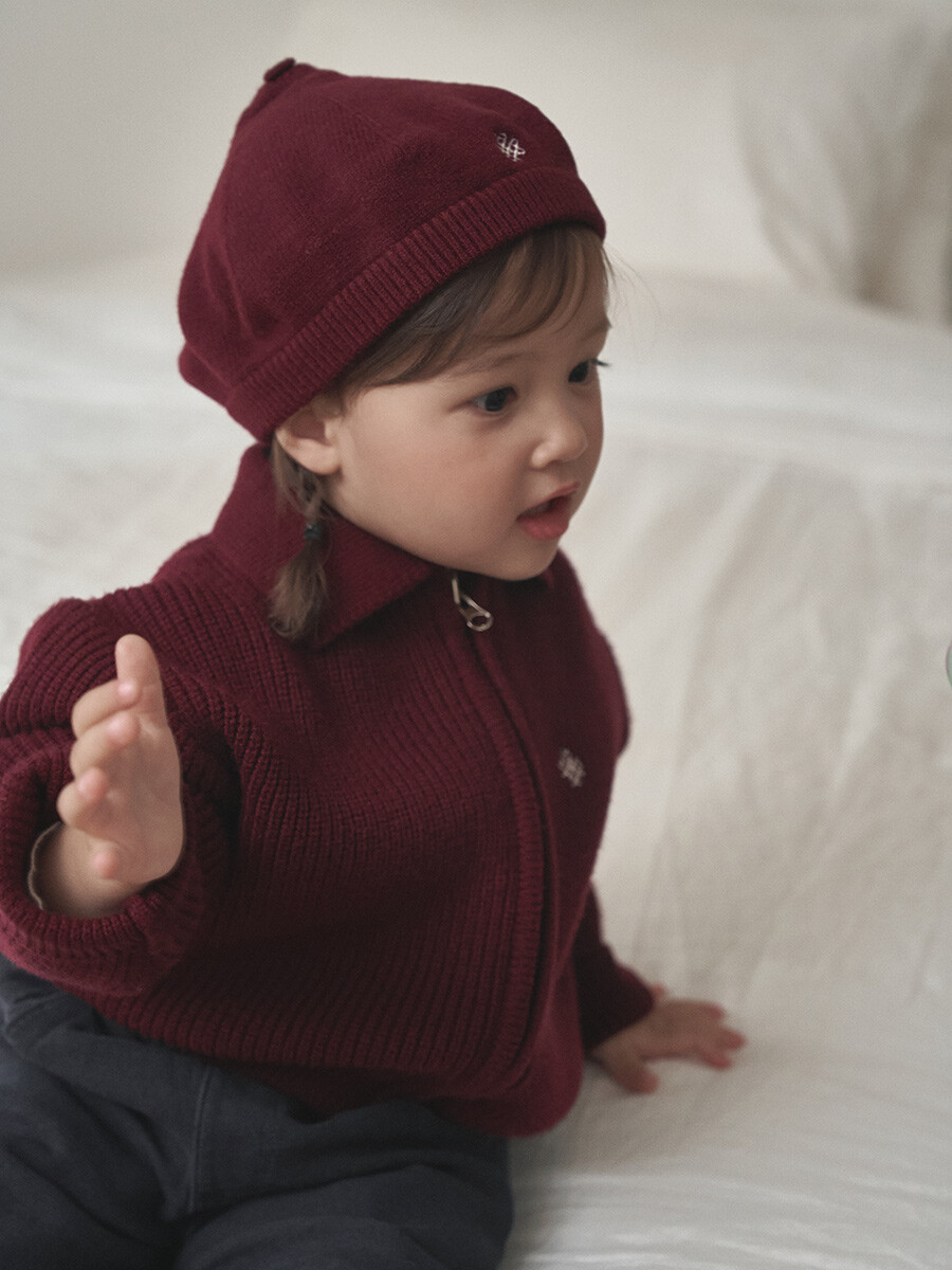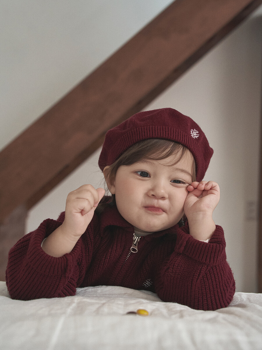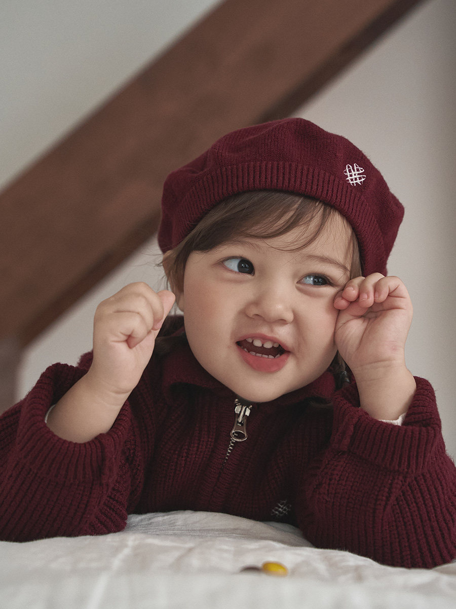 [HAPPY OURDAY] Classic knit cardigan set (가디건+베레모)_Burgundy